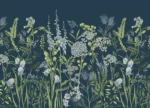 Custom Size Wall Mural Vetch Flowers on Prussian Blue | Premium Non-Woven Wallpaper | FT5P 352407