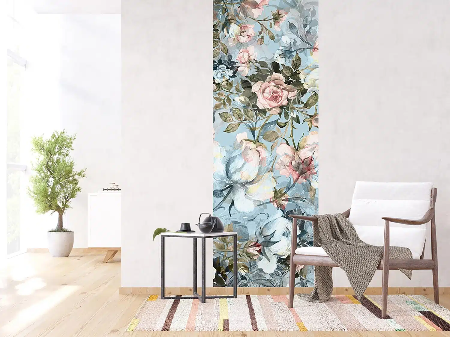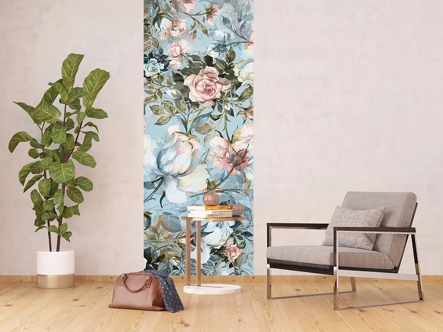 Wall Mural Blue Flower Pattern, 90 x 270 cm, FTNVL3713