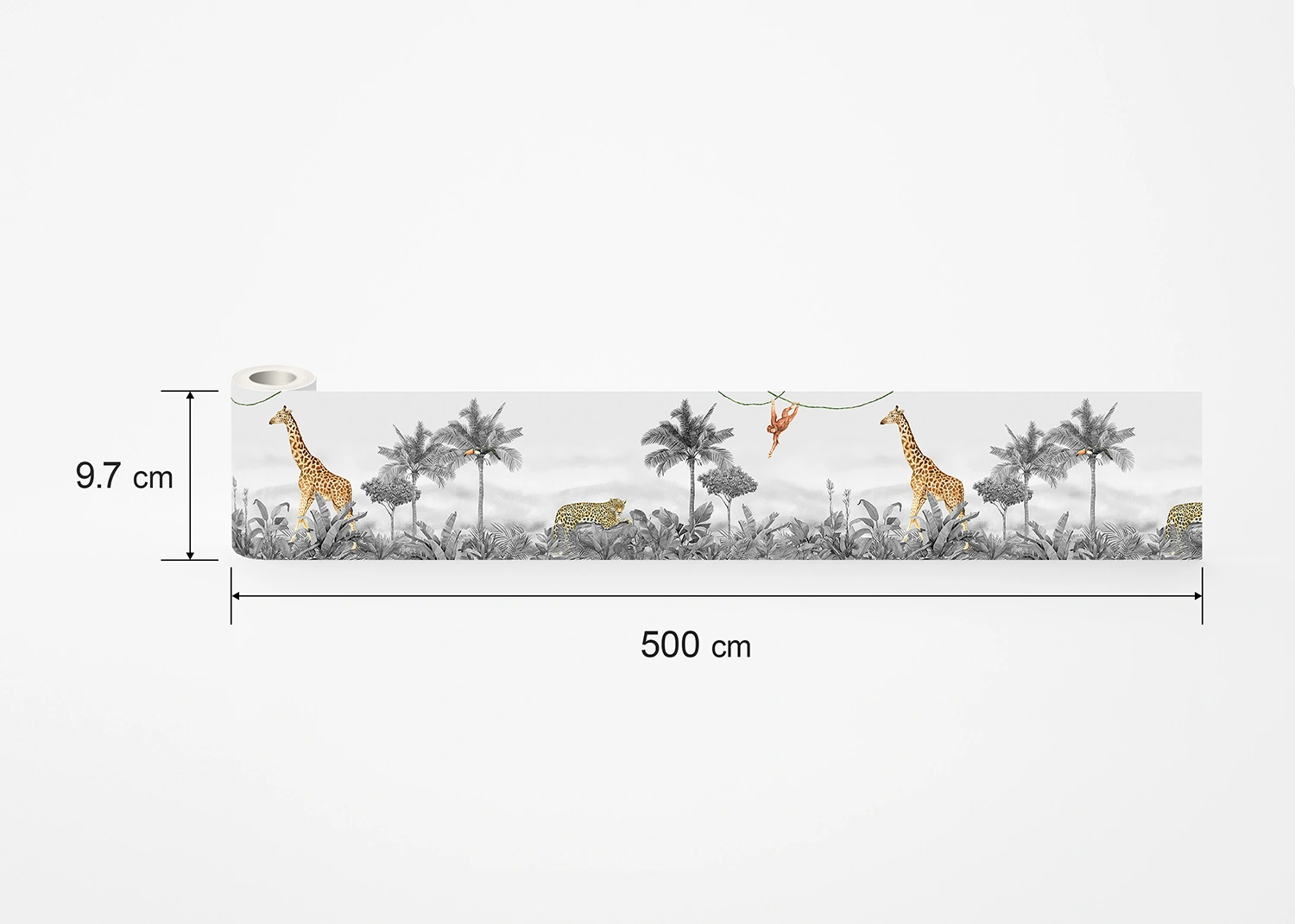 Explore different Jungle scenes and its adorable habitants with our charming designs, which are tailored to captivate any child. Crafted with love, each border adds a sprinkle of magic to your child’s room. Alongside our Jungle wall borders, explore our range of textile products, wall stickers, and murals to complement the theme seamlessly.