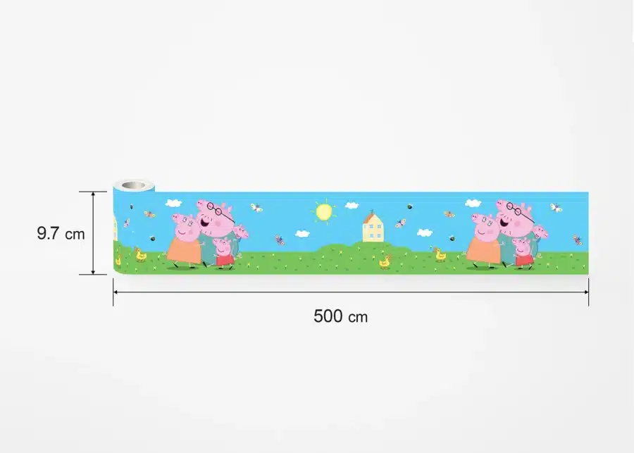 Explore different Peppa’s adventures from delightful picnics to underwater expeditions with our designs, which are tailored to captivate any child. Crafted with love, each border adds a sprinkle of magic to your child’s room. Alongside our Peppa Pig wall borders, explore our range of textile products, wall stickers, and murals to complement the theme seamlessly.