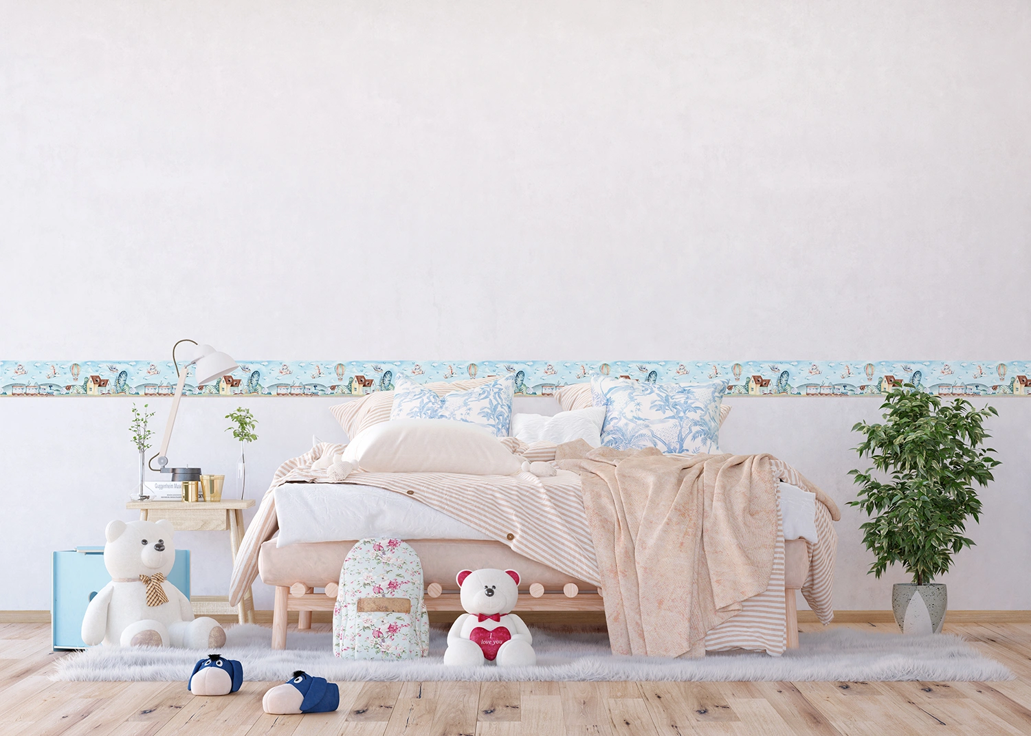 Discover a wide range of themes and styles created to captivate any child. Each design is made with love by our passionate team to add magic and excitement to your child’s room. Alongside our kids wall borders, explore our range of textile products, wall stickers, and murals to complement the theme seamlessly.
