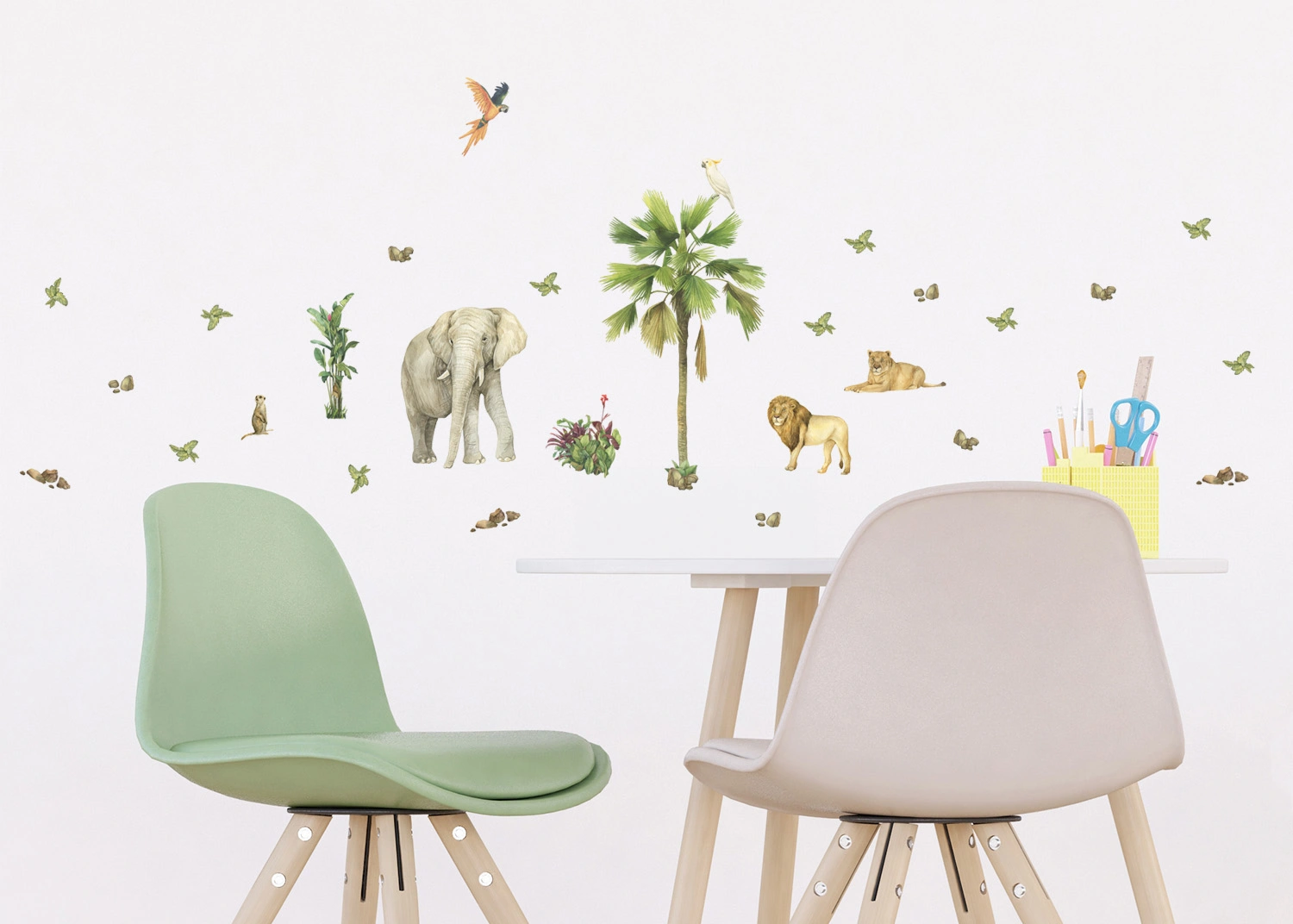 Our commitment to excellence extends to the materials we use. We prioritize eco-friendly European materials, ensuring safety and beauty in every sticker. Crafted from sustainable phthalate-free materials and non-toxic inks, our Jungle wall stickers offer scentless, environmentally friendly decoration that promises lasting appeal and durability.