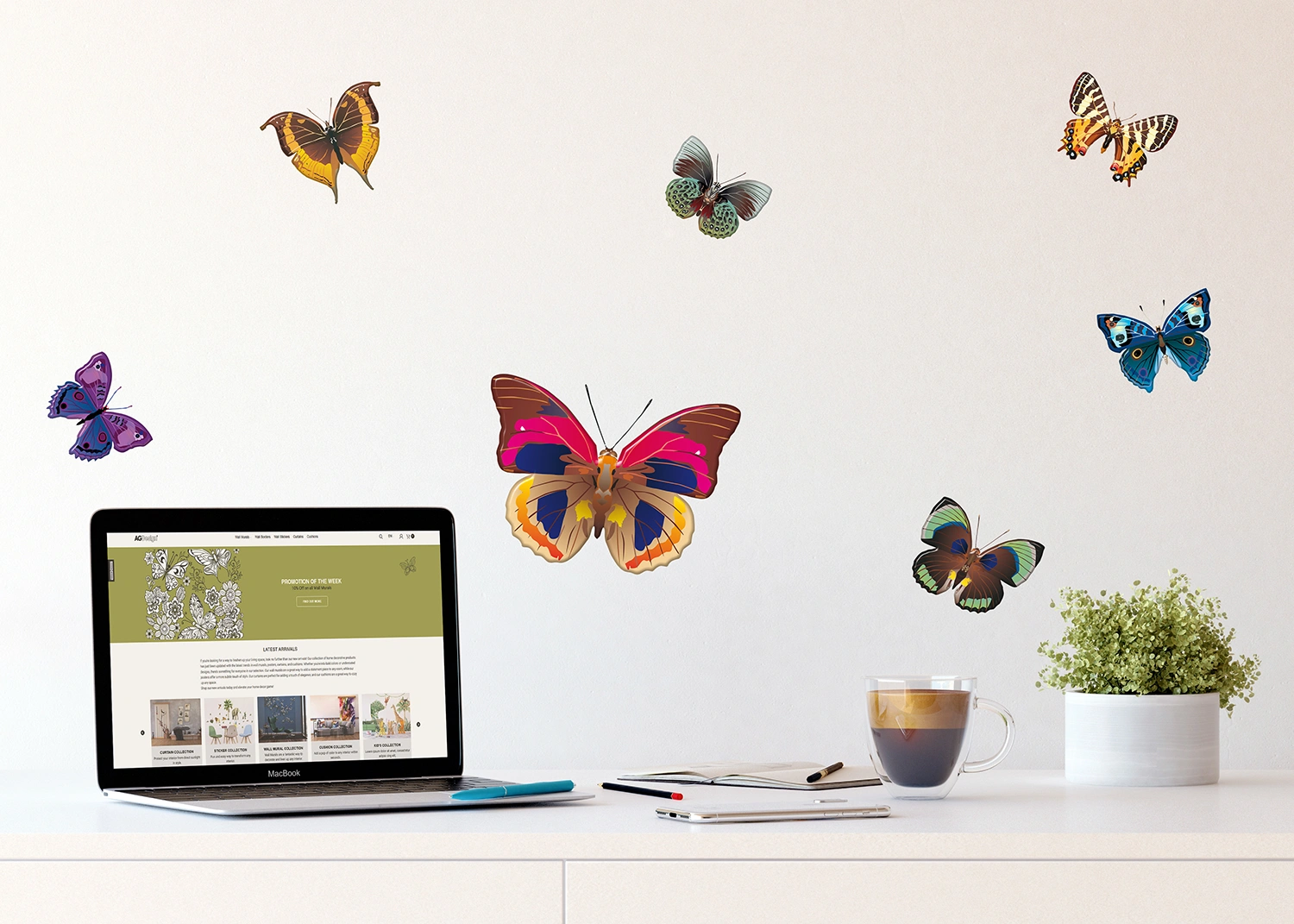 Discover a wide range of themes and styles created to perfectly suit every setting. Our collection includes tender colorful flowers, abstract motiffs, thematic compositions, mosaic puzzles and many more to suit a broad range of tastes. Each sticker design is made with love by our passionate design team to ensure that it fills any space with an element of sophistication and elegance. Complementing our wall stickers, we offer a variety of textile products along with thematic wall borders and murals.