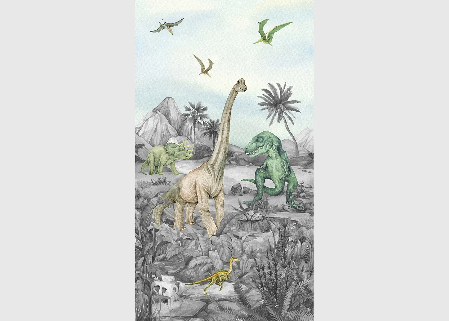 Step into prehistoric adventure right in your child’s room with our delightful Dino wall mural! Designed to infuse warmth and joy into their space, these photomurals bring a playful touch to any kid’s haven. Bring your little explorer into a land of ancient wonders and colossal creatures, igniting their imagination and love for different dinosaurs!