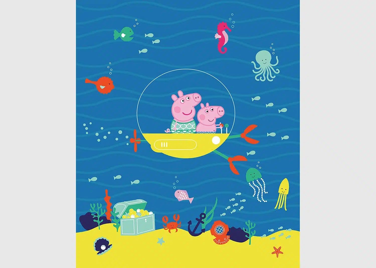 Explore different Peppa’s adventures from delightful picnics to underwater adventures with our designs, which are tailored to captivate any child. Crafted with love, each mural adds a sprinkle of magic to your child’s room. Alongside our Peppa Pig wall murals, explore our range of textile products, wall borders, and stickers to complement the theme seamlessly.