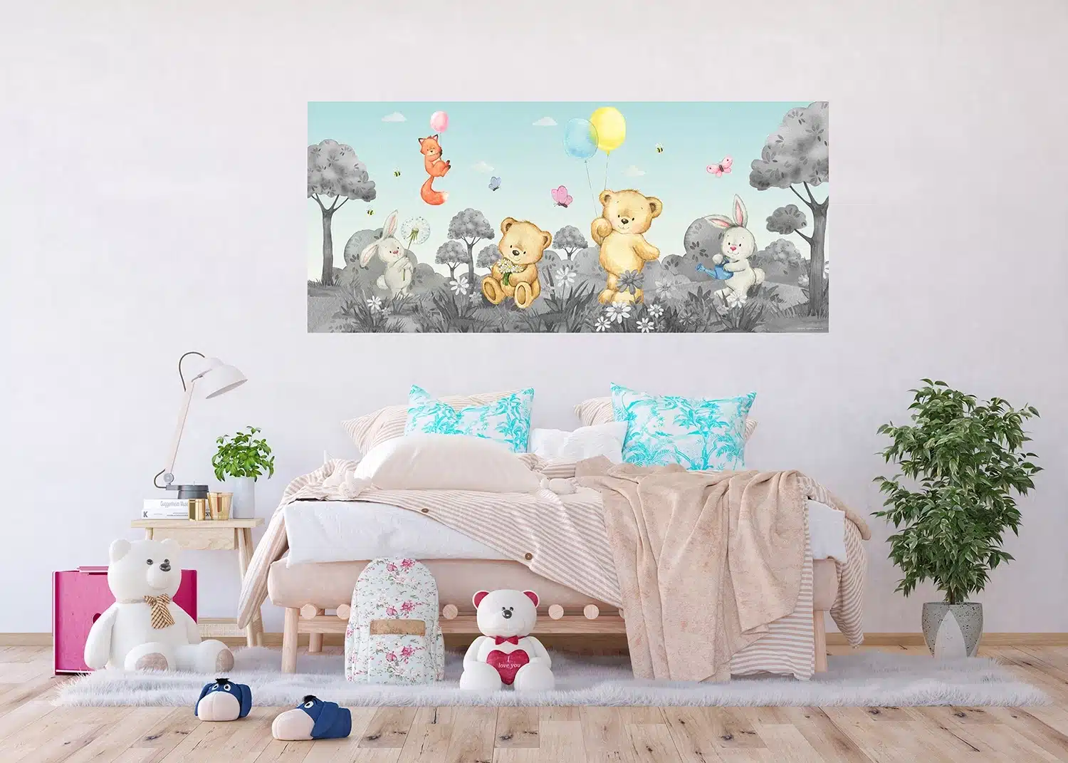 Meet adorable Cute Bear friends with our charming designs tailored to captivate any child. Crafted with love, each mural adds a sprinkle of magic to your child’s room. Alongside our Cute Bear wall murals, explore our range of textile products, wall borders, and stickers to complement the theme seamlessly.