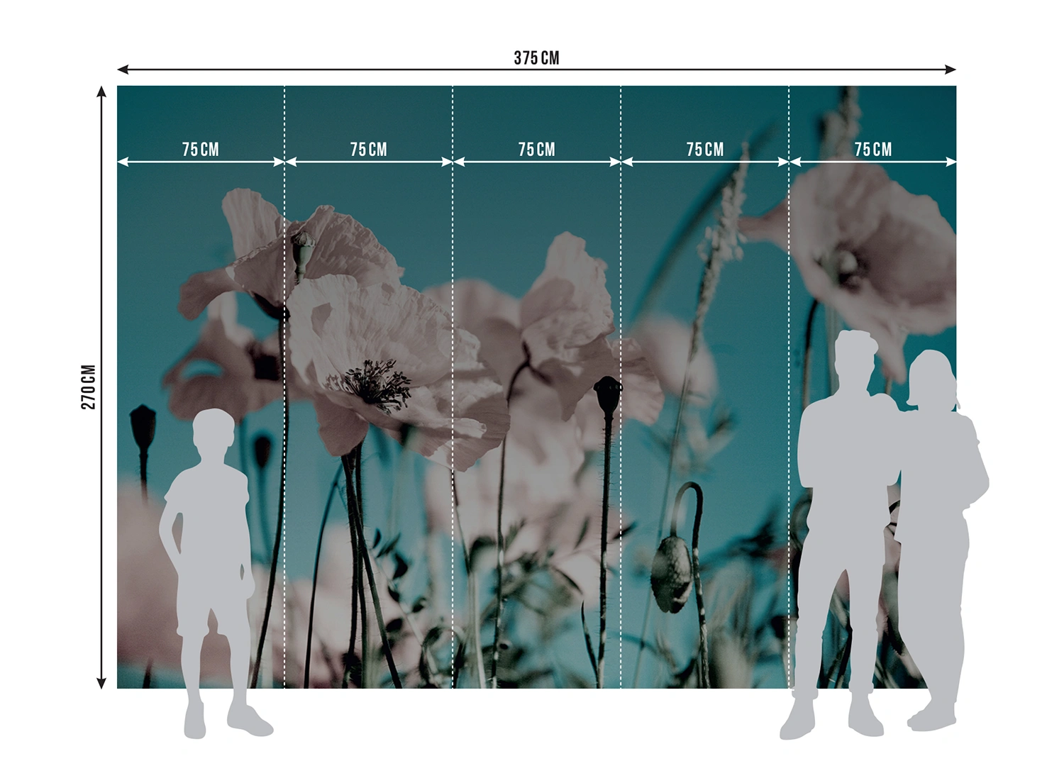 Wall Mural Poppies on Blue, 375 x 270 cm, FTNXXL 0118