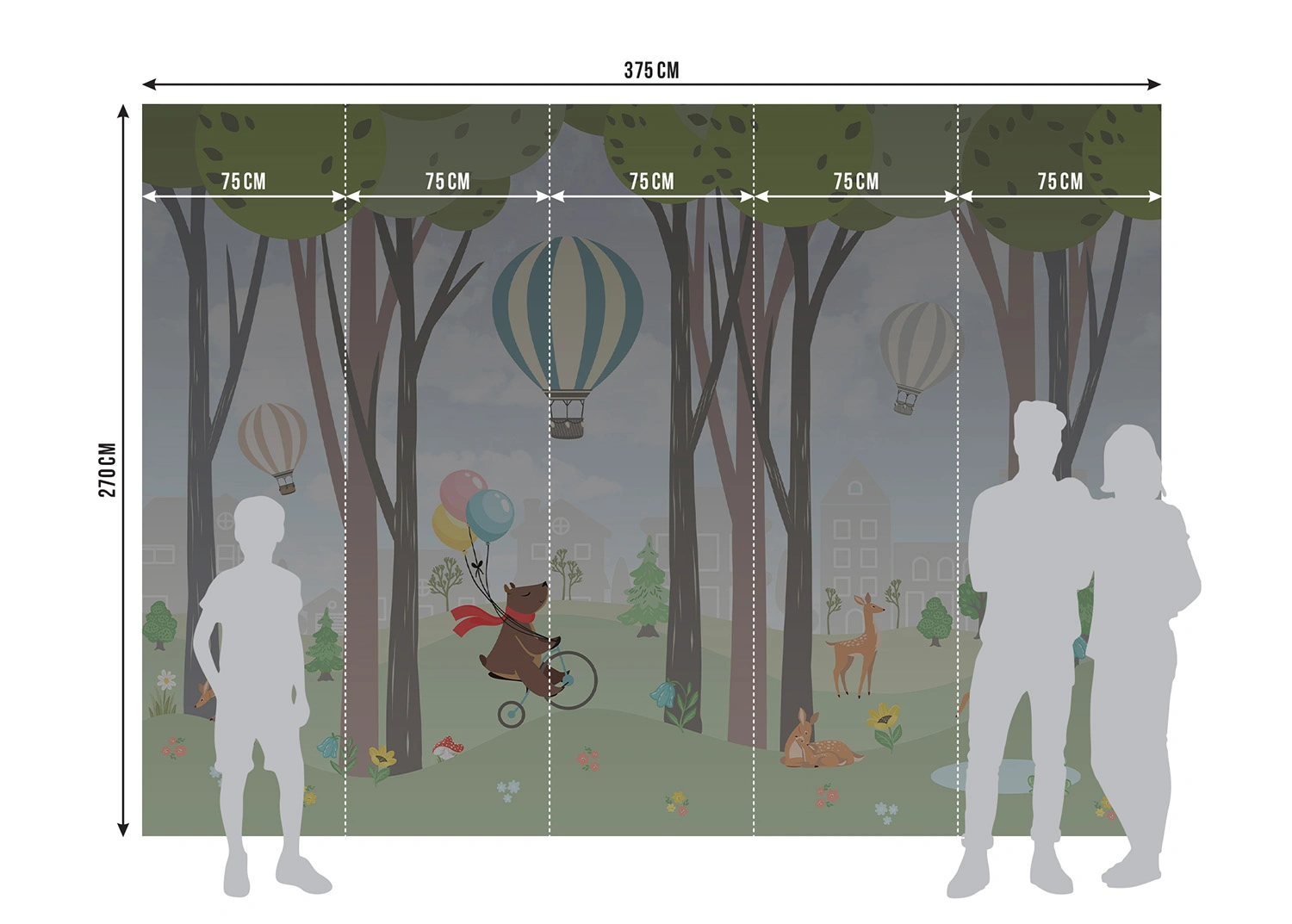 Transforming your child’s walls is hassle-free with our easy installation process. No need for complicated tools or specialized skills. Our step-by-step guide ensures a smooth and effortless setup, allowing you to enjoy your new enchanting space in no time. We specifically chose the width of one panel to be 75 cm compared to standard 50 cm to enhance the visual appearance. This decreases overall number of panels by 30% and ensures convenient installation with less work. Also, you don’t have to worry about additional expenses – we provide special glue free of charge to any wall mural.