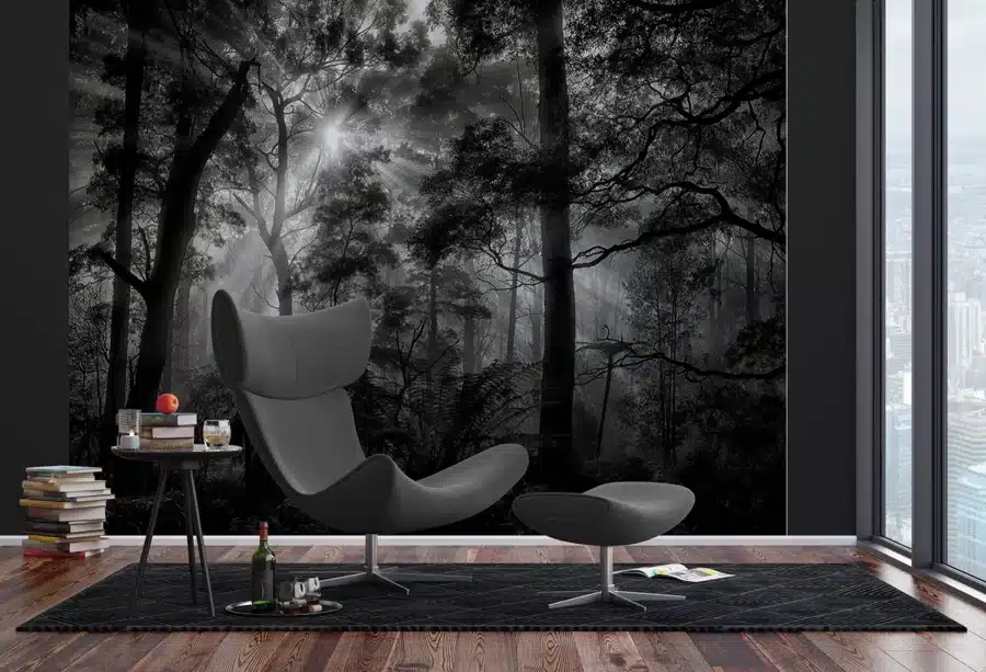 Custom Size Wall Mural Monochrome Forest | Premium Non-Woven Wallpaper | FTNXXL3027