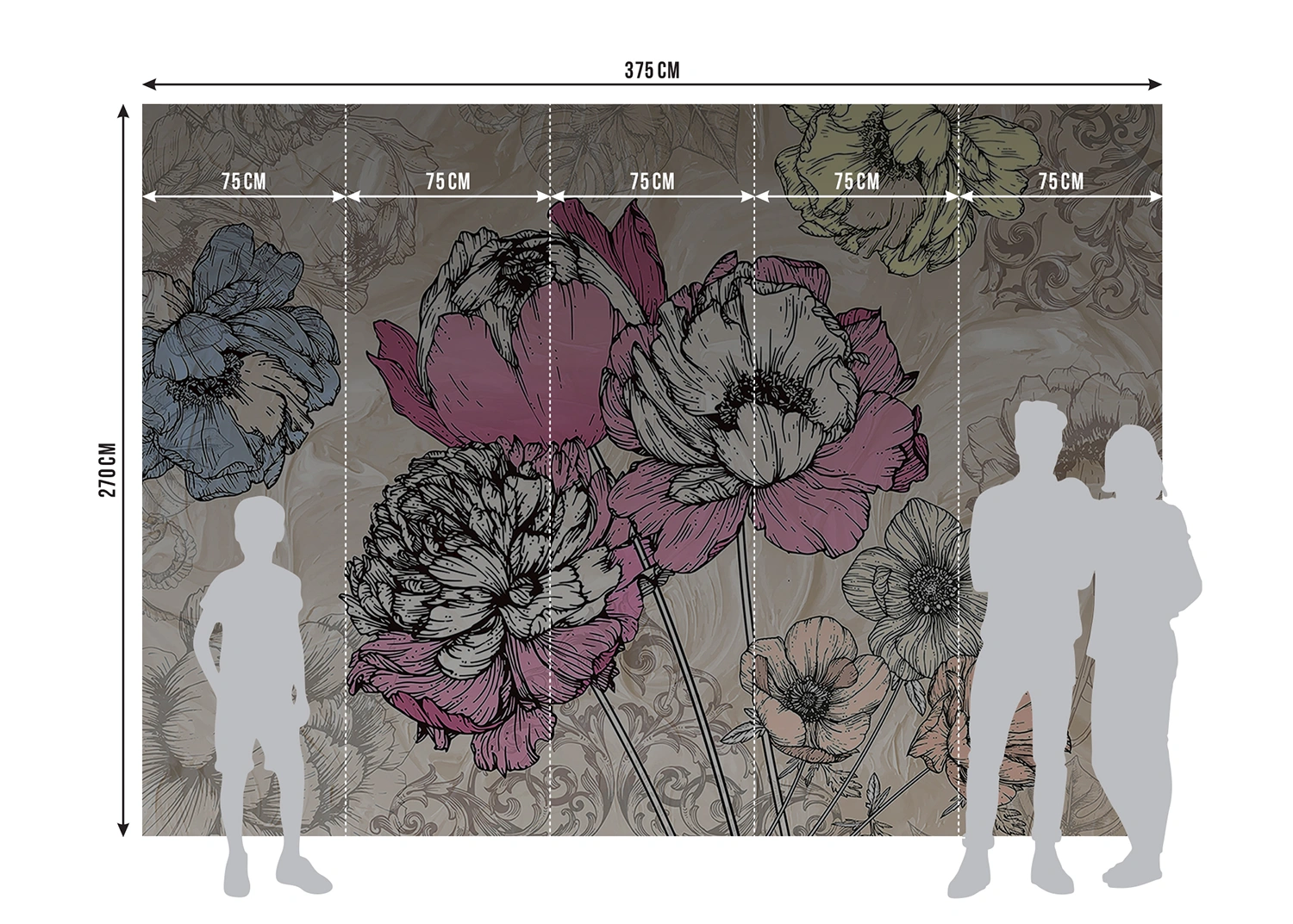 With a hassle-free installation process, anyone can easily liven up their walls with our murals. No need for complicated tools or specialized skills. Our step-by-step guide ensures a smooth and effortless setup, allowing you to enjoy your new space in no time. We specifically chose the width of one panel to be 75 cm compared to standard 50 cm. This decreases overall number of panels by 30% and ensures convenient installation with less work.