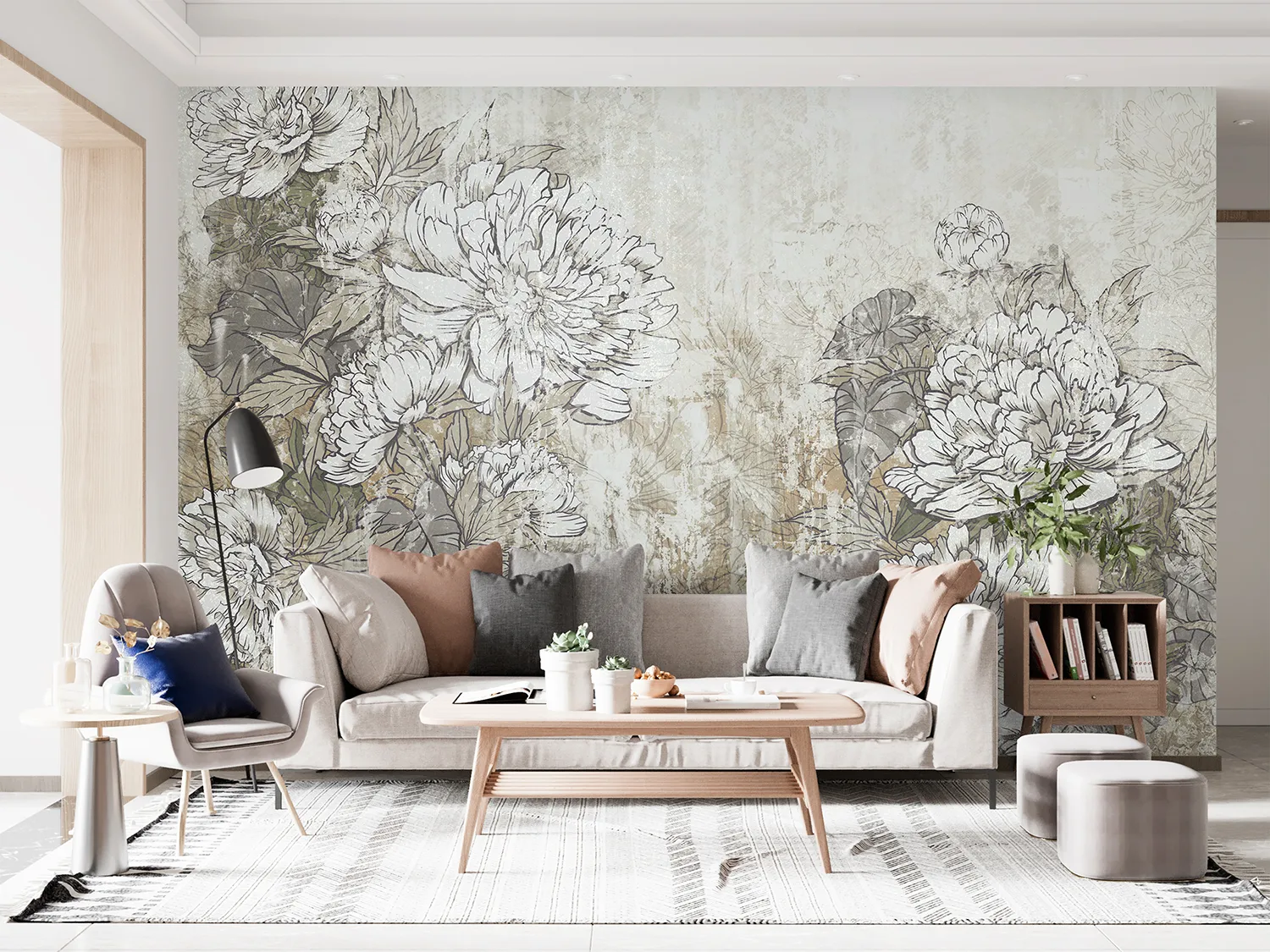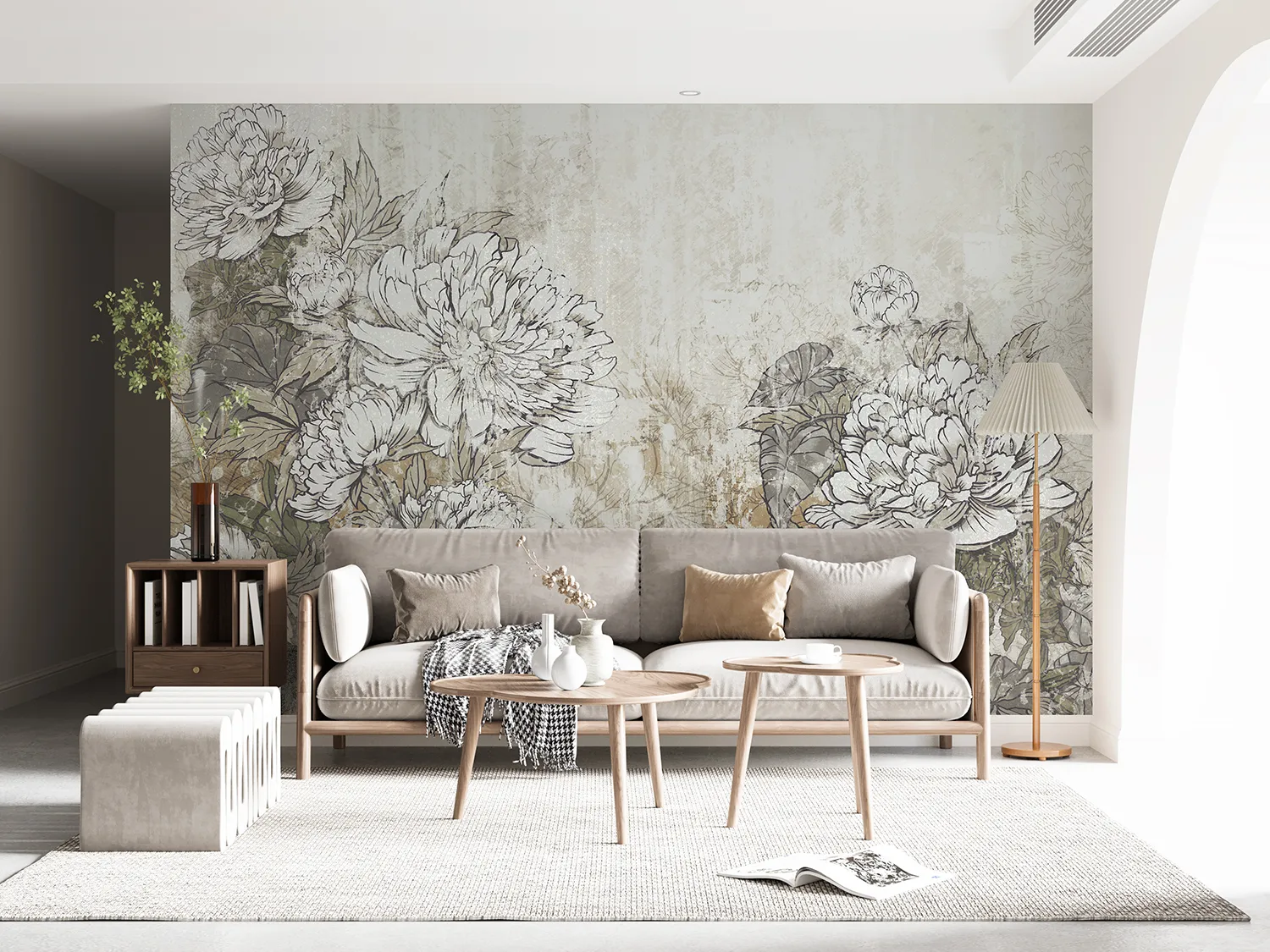 Wall Mural Vintage Peonies, 375 x 270 cm, FT5P 352235